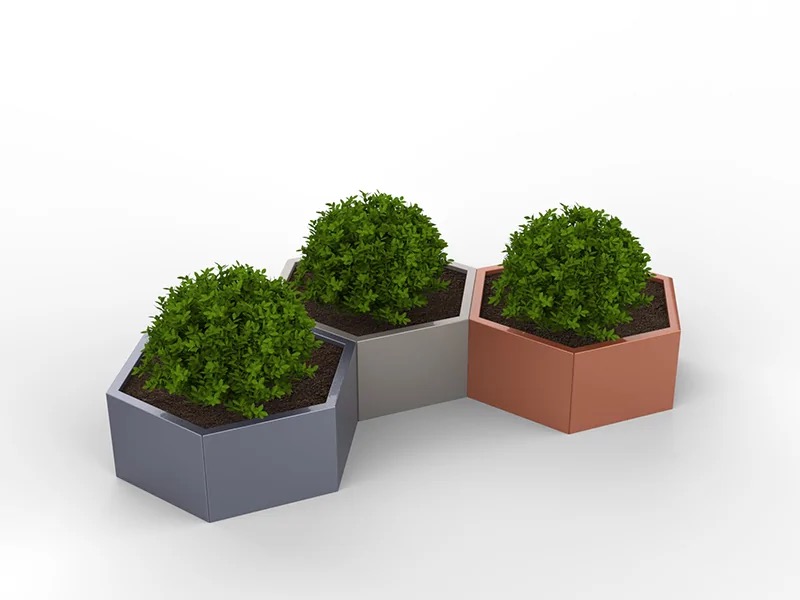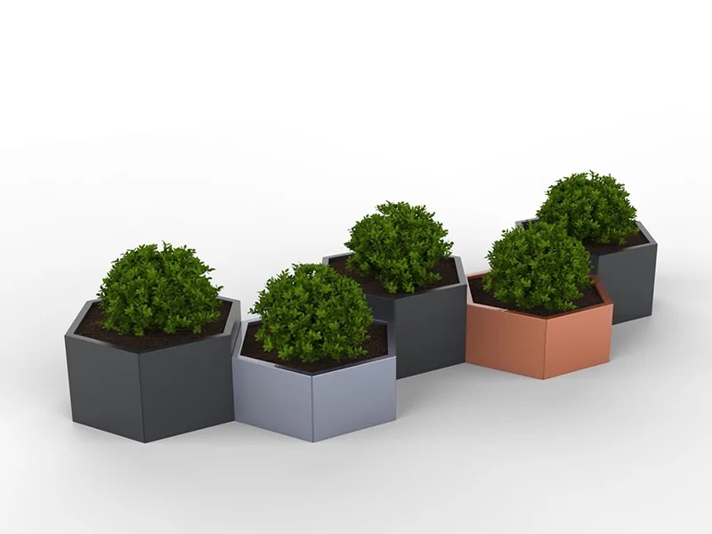 Ce bac à fleurs hexagonal métal est un modèle parfait pour de multiples combinaisons. Ce modèle se décline dans plusieurs dimensions et hauteurs. Il peut être en acier galvanisé thermolaqué ou inox, il est parfait pour les espaces extérieur, il s’intégrera parfaitement dans tous les espaces urbains.