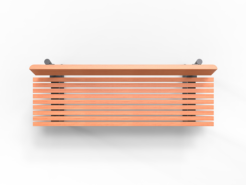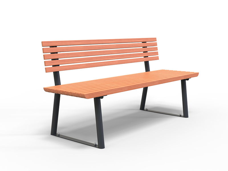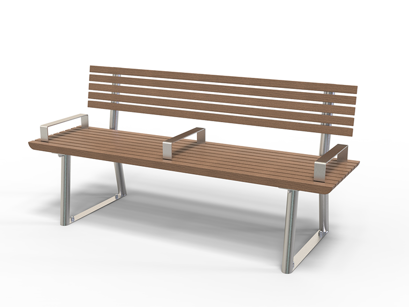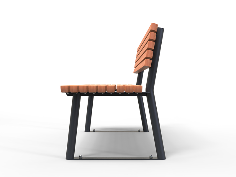 Le banc de parc modulaire acier et bois a un design simple et minimaliste qui s’intégrera parfaitement dans n’importe quel espace public.