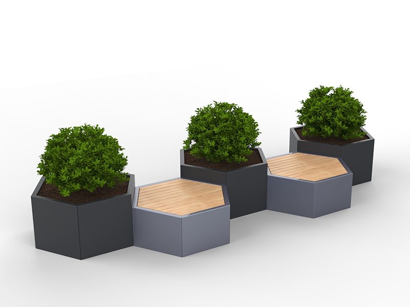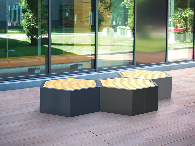 Le banc acier et bois assise hexagonale est un modèle modulaire élégant, parfait comme élément d’aménagement de places publiques, d’espaces commerciaux. Ces bancs modulaires peuvent être combinés avec des jardinières hexagonales voir notre rubrique jardinières & bacs à fleurs.