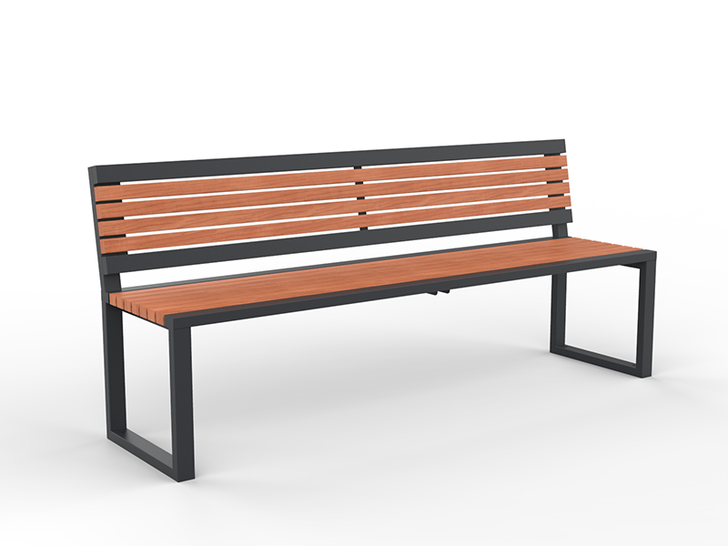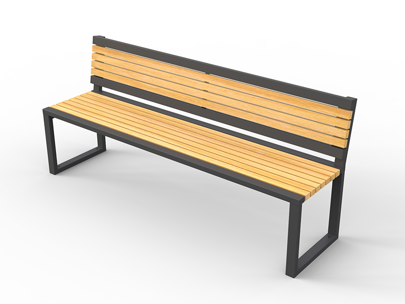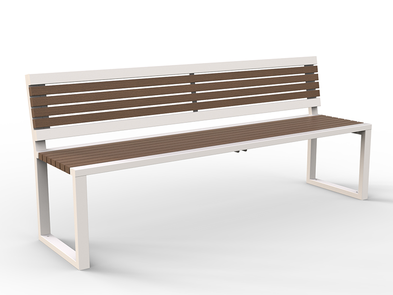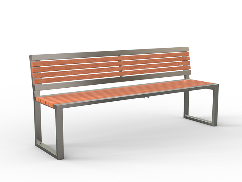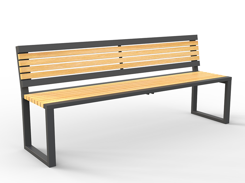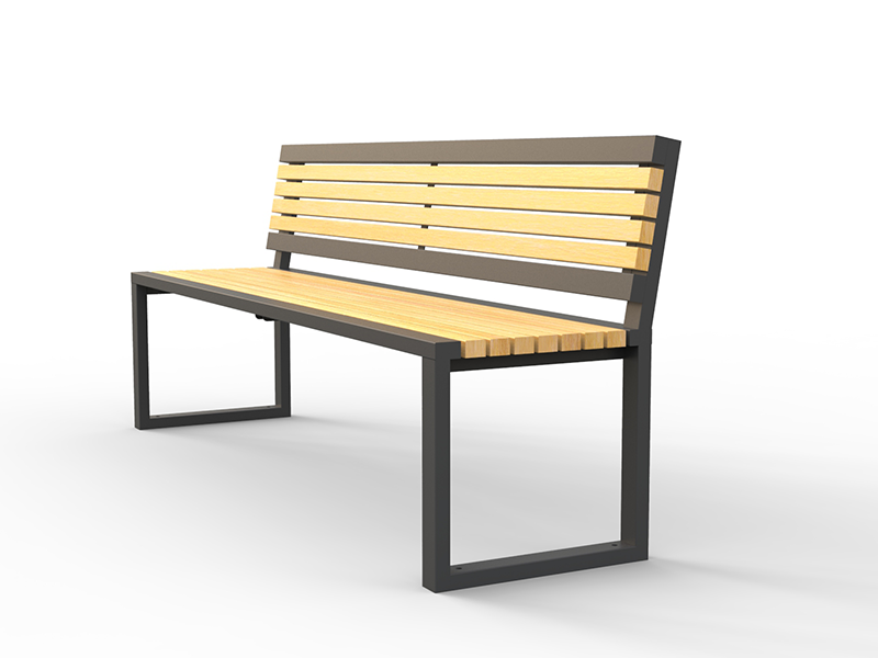 Ce banc public minimaliste avec dossier à une forme épurée et simple, grâce à de nombreuses combinaisons de couleurs métal et bois, il s’intégrera dans n’importe quel espace urbain.