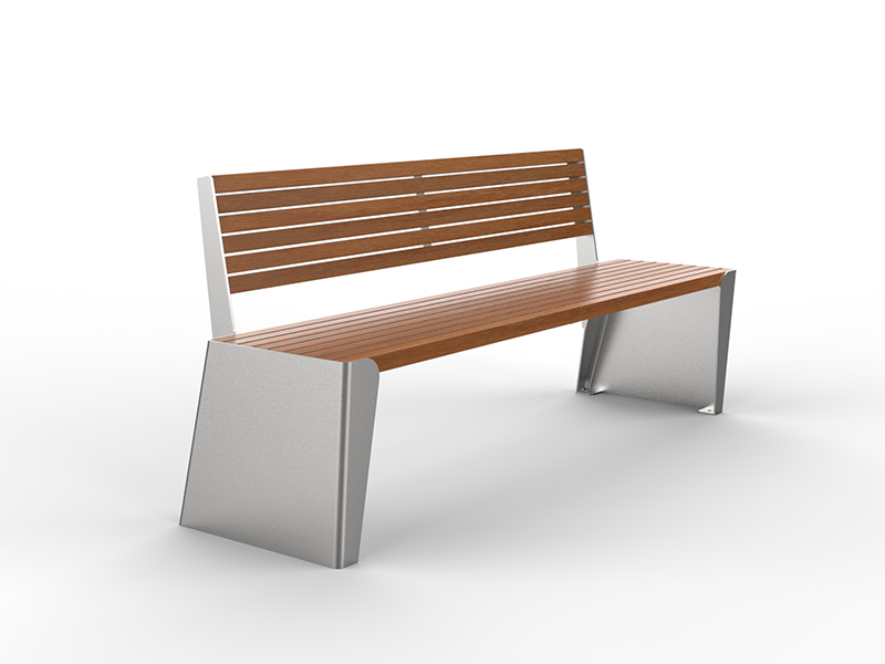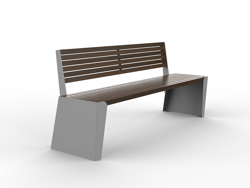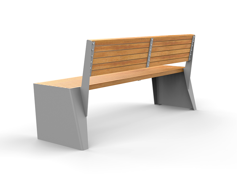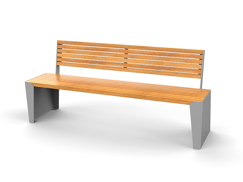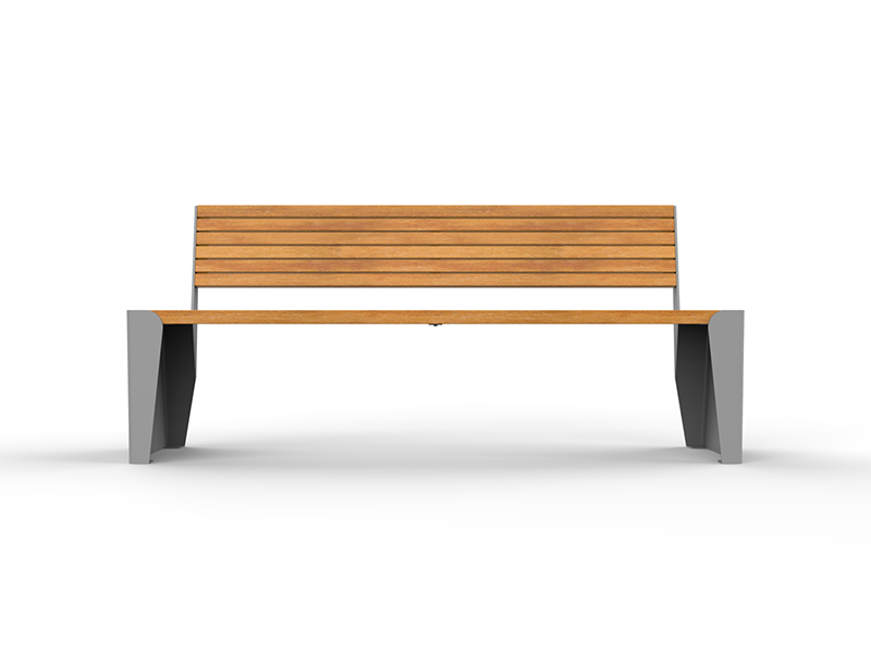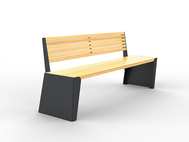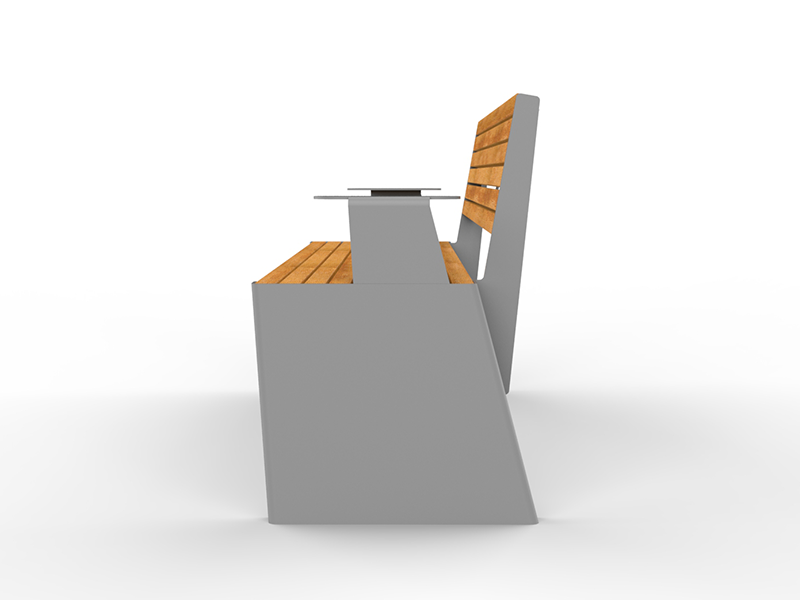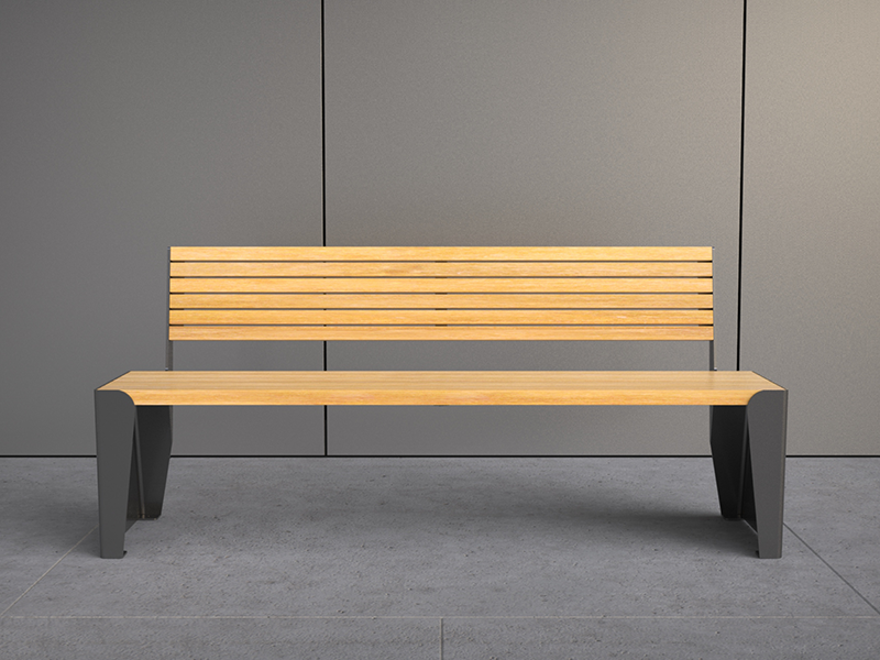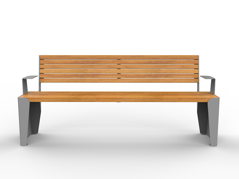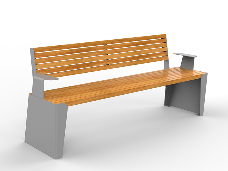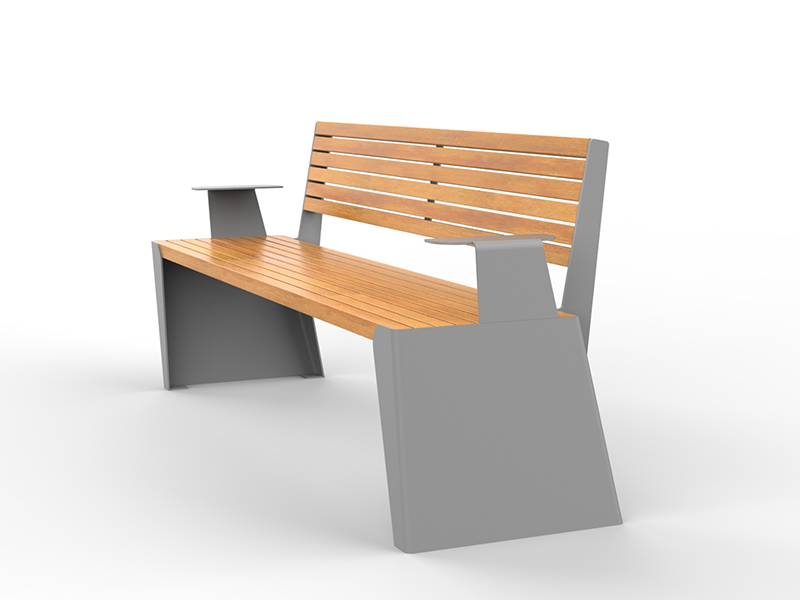 Le banc public acier et bois option accoudoirs a une structure minimaliste moderne avec des formes uniques, un design épuré moderne et surprenant.