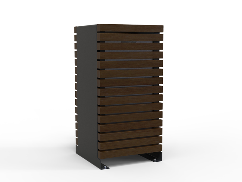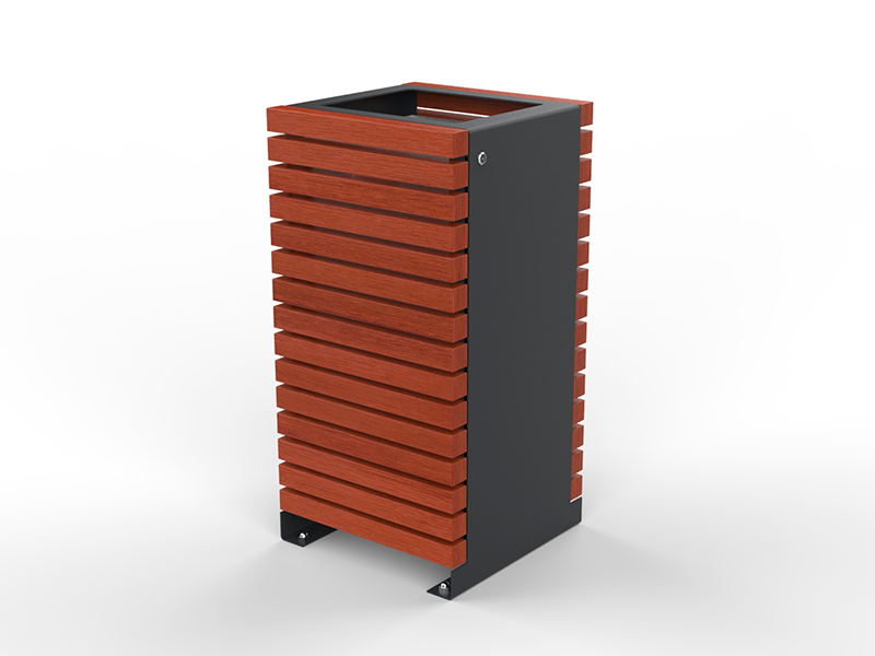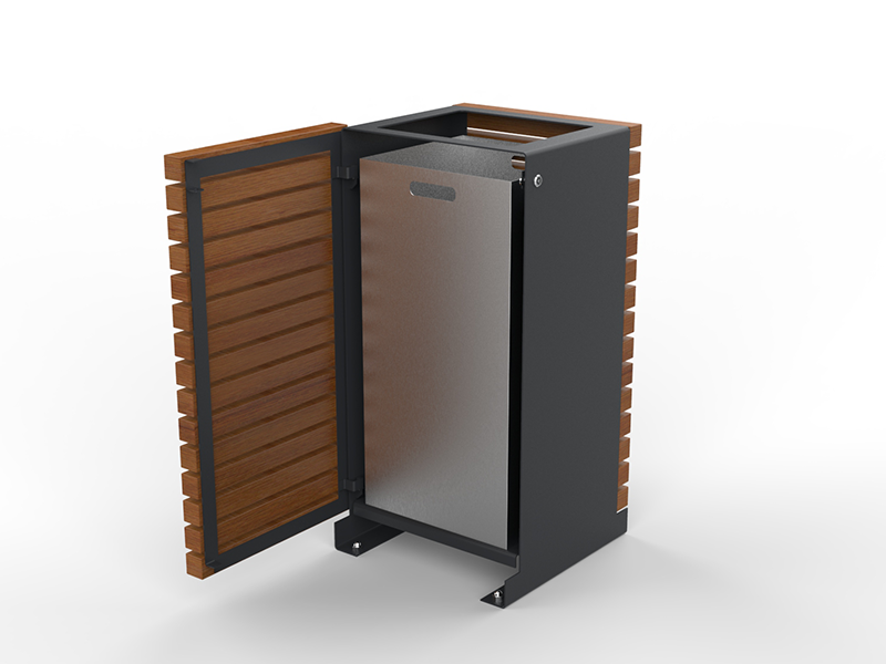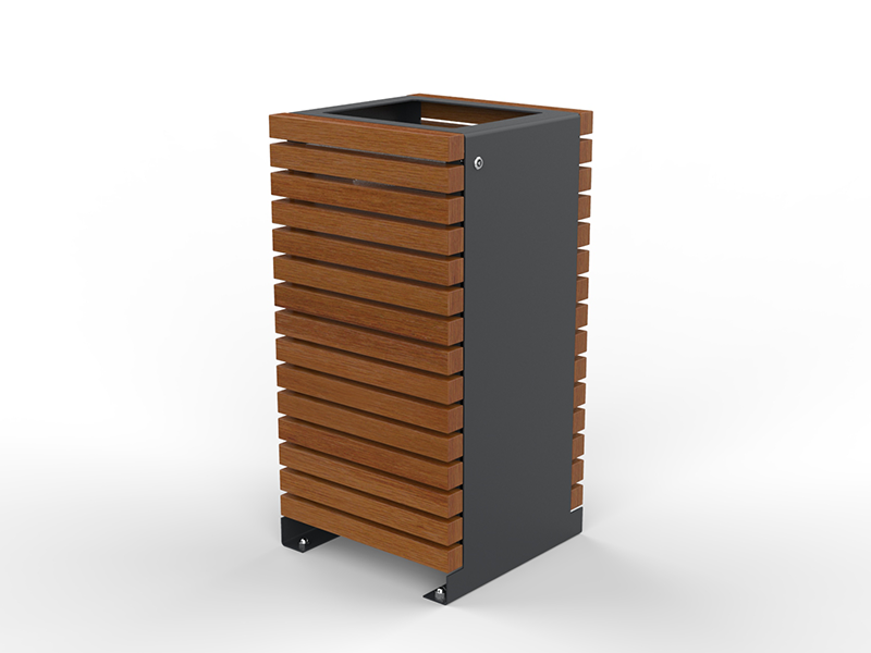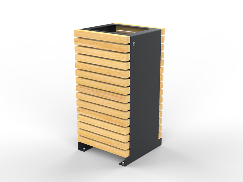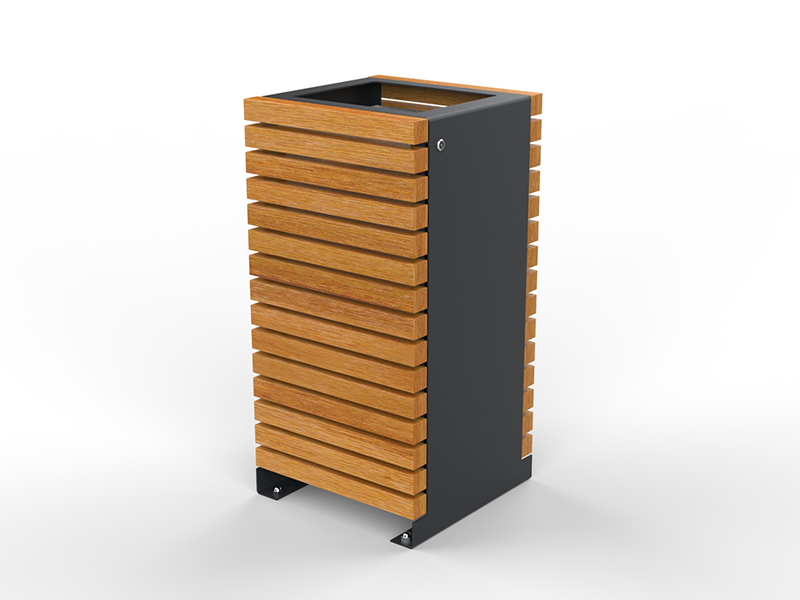 La poubelle urbaine acier et bois pour des installations modernes et minimalistes qui exigent simplicité et pleine fonctionnalité.