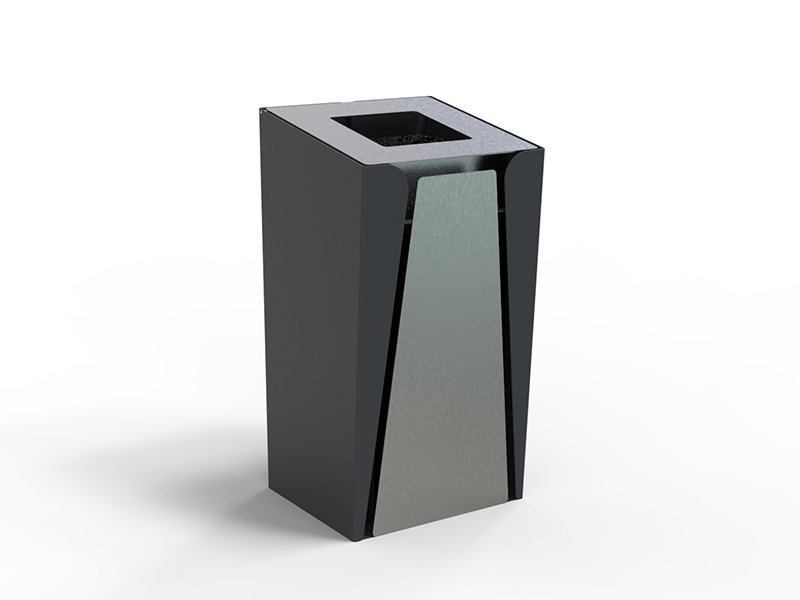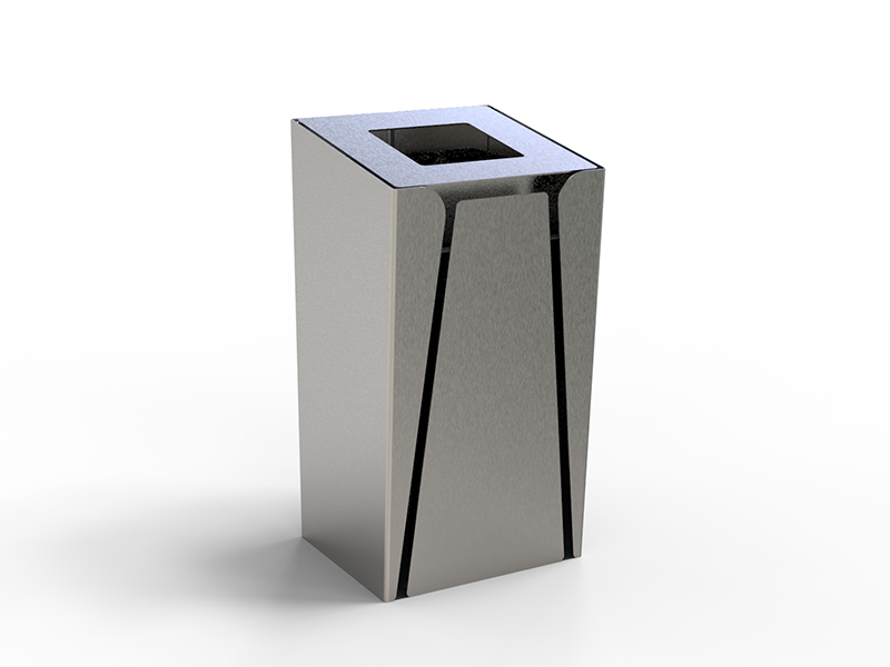La poubelle urbaine carrée en acier convient aussi bien à un usage intérieur qu’à l’extérieur (dans ce dernier cas, la poubelle doit être ancrée au sol).