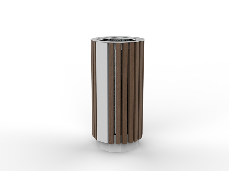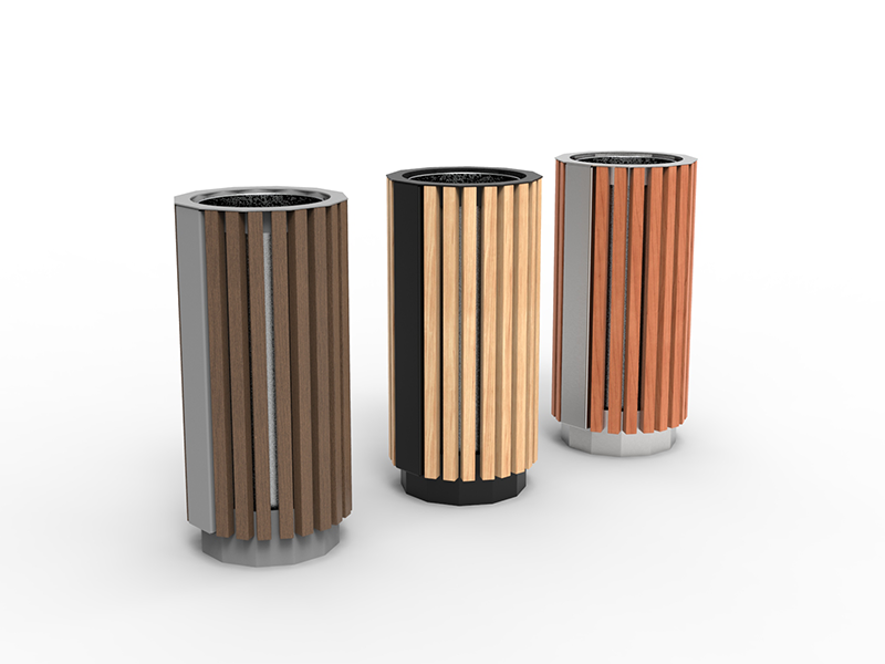 La poubelle urbaine ronde acier et bois est un modèle fonctionnel au design moderne. Un mariage métal et bois qui s’adapte parfaitement à l’esthétique de n’importe quel espace public. La structure peut être fabriquée en acier inoxydable 316 ou en acier galvanisé thermolaqué dans n’importe quelle couleur de la palette RAL standard. La finition est en bois exotique, couleurs à définir.