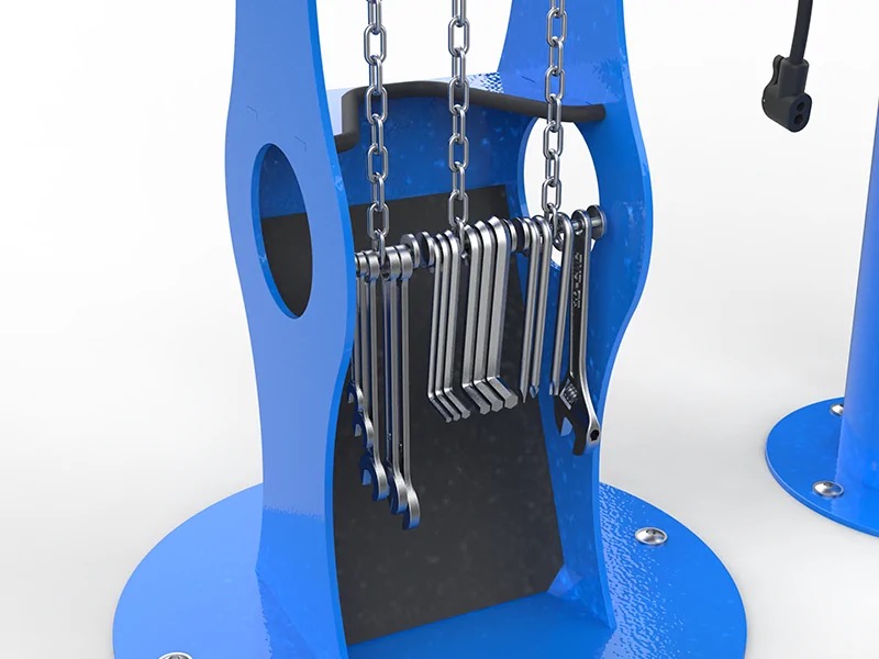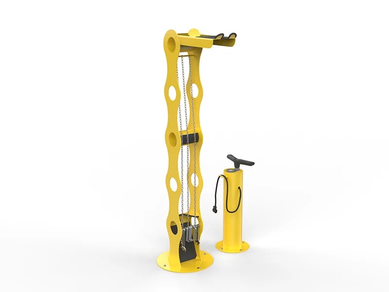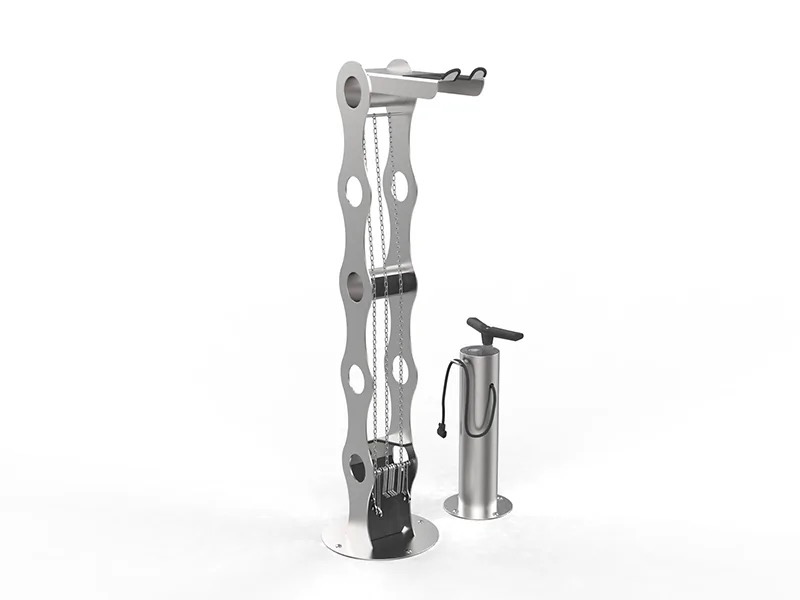 Cette station de réparation vélo en libre service est un dispositif qui permet de réparer ou d’effectuer un petit entretien rapide. Le cintrage de la partie haute permet d’accrocher le vélo par la selle, vous permettant (par exemple) de pouvoir dévisser une roue pour effectuer une réparation.