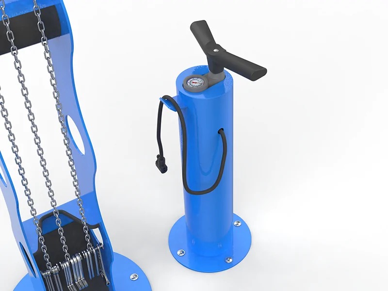 - 1 pompe indépendante avec manomètre (bar / psi) embout schrader / presta