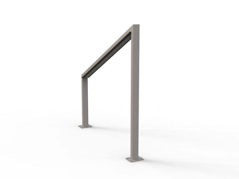 Le support à vélo acier incliné avec ou sans protection caoutchouc peut être fixé au sol à l’aide de platines perforées ou sceller directement dans le béton.